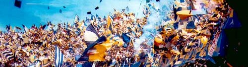 INTRODUZIONE ![]() Nelle righe (parecchie per la verità) che seguono, non troverete LA storia delle Brigate Gialloblu, ma UNA storia delle Brigate Gialloblu, vale a dire una versione, la più obiettiva possibile, su un fenomeno sociale che anche dopo lo scioglimento del gruppo storico, avvenuto nel 1991, ha mantenuto intatto il suo peso coinvolgendo ancora oggi migliaia di giovani e meno giovani. UNA storia, perché nel tentativo di raccogliere notizie documentate, date, nomi e quant'altro possa servire a tracciare un ritratto definitivo della curva sud veronese, ci siamo imbattuti in tante versioni, alcune diametralmente opposte; abbiamo letto e sentito tante parole ma i fatti certi o accertabili non sono moltissimi e sono tutti per lo più già conosciuti. Pertanto, abbiamo messo insieme tasselli raccolti qua e là, cercando di attenerci ai fatti e cercando di non cadere nell'ipocrisia o nel giudizio spiccio. Se qualcuno si aspetta notizie bomba, scoop o giù di lì, rimarrà probabilmente deluso, ma tant'è: sulle Brigate si è detto tutto e il contrario di tutto, se ne sono occupati sociologi, politici, psicologi, procuratori della repubblica, sacerdoti. Una voce in più non dovrebbe guastare. In definitiva vorremmo che questo lavoro fosse un punto di partenza, un paradigma su cui iniziare a lavorare, dinamico, duttile e sempre pronto ad essere aggiornato da nuove e diverse testimonianze. La nostra ricostruzione si divide in tre parti: I PRIMORDI DEL TIFO ORGANIZZATO E L'ESPLOSIONE DEGLI ANNI '70: una panoramica sintetica sulla nascita delle curve italiane e della figura degli ultrà, un'introduzione doverosa per capire in quale contesto nascono le Brigate; LE BRIGATE GIALLOBLU E LA CURVA SUD DAL 1971 AL 1982: i primi 10 anni della curva sud, al seguito del Verona di Garonzi, con l'intermezzo della B fino alla rinascita dell'Hellas con Bagnoli; prima parte | seconda parte GLI ANNI '80 E LO SCIOGLIMENTO DELLE BRIGATE GIALLOBLU: le Brigate e il Verona scudettato, ma anche la violenza, lo scontro con la dirigenza Chiampan, le diffide, gli arresti, le proteste, la fine del ciclo di Bagnoli e lo scioglimento. A supporto della narrazione, alcune testimonianze di "ex brigatisti". prima parte | seconda parte Mettetevi la sciarpa, schiarite la voce e controllate se avete in tasca il biglietto di curva sud e gli spiccioli per il caffè Borghetti. Adesso si parte sul serio! Davide |