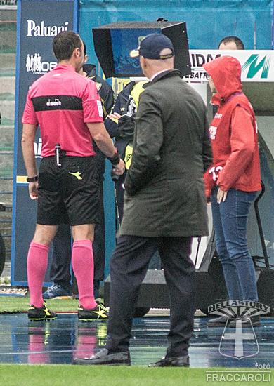 L'arbitro consulta la VAR per decretare il rigore a favore dell'Hellas